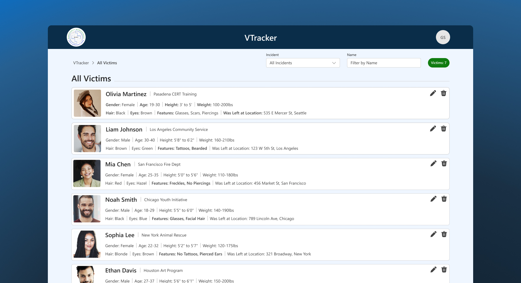 Log victim details in real time and cross-reference them with information submitted by the public.